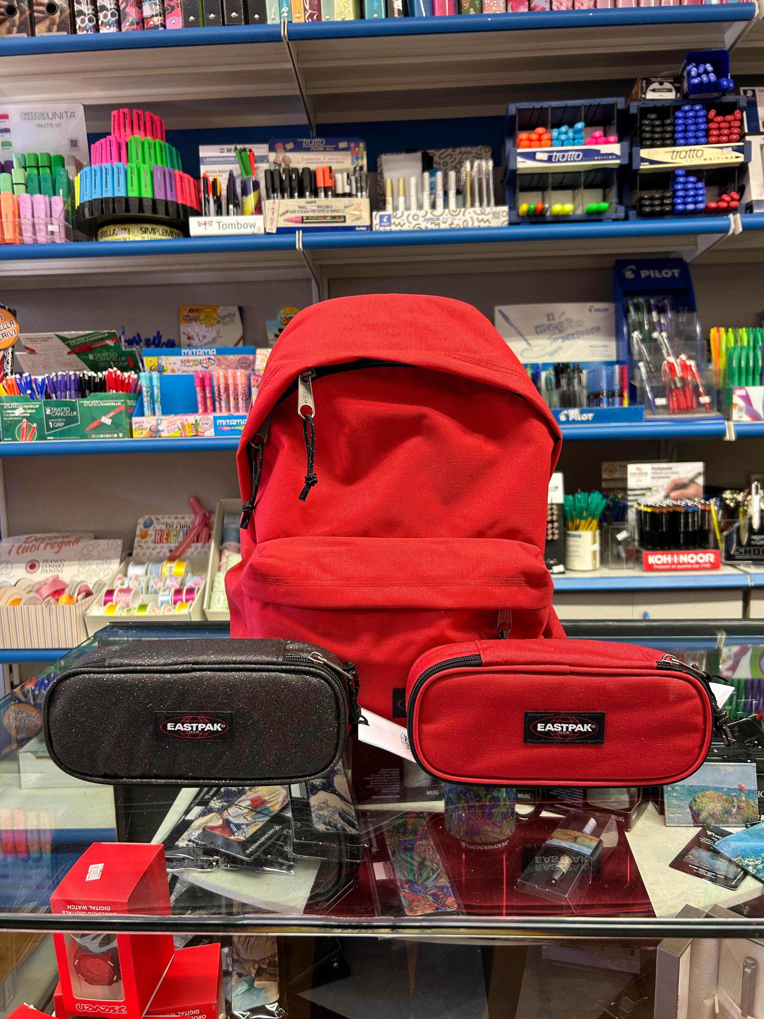 Zaino rosso Eastpak e astucci (nero con brillantini e rosso)